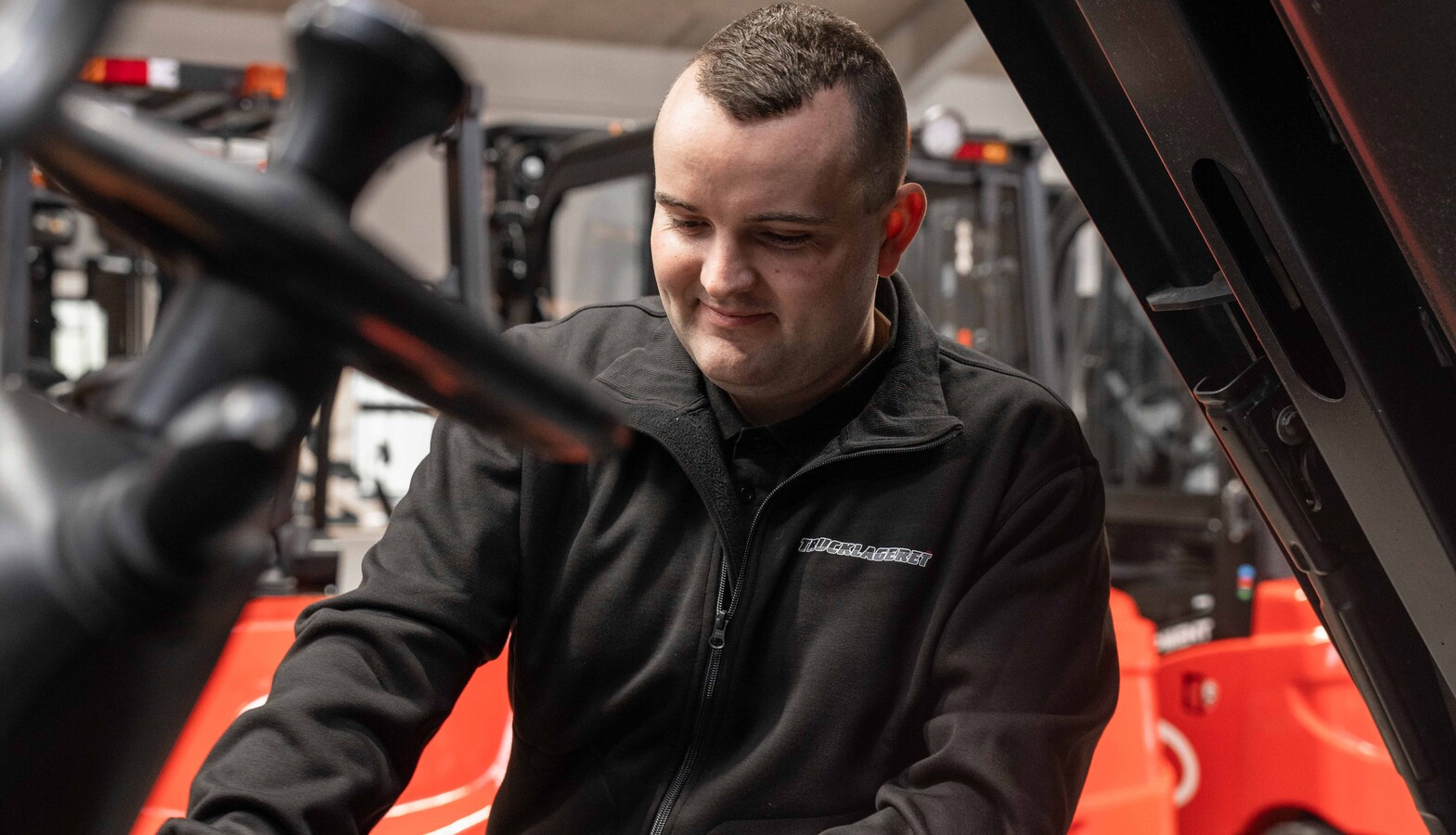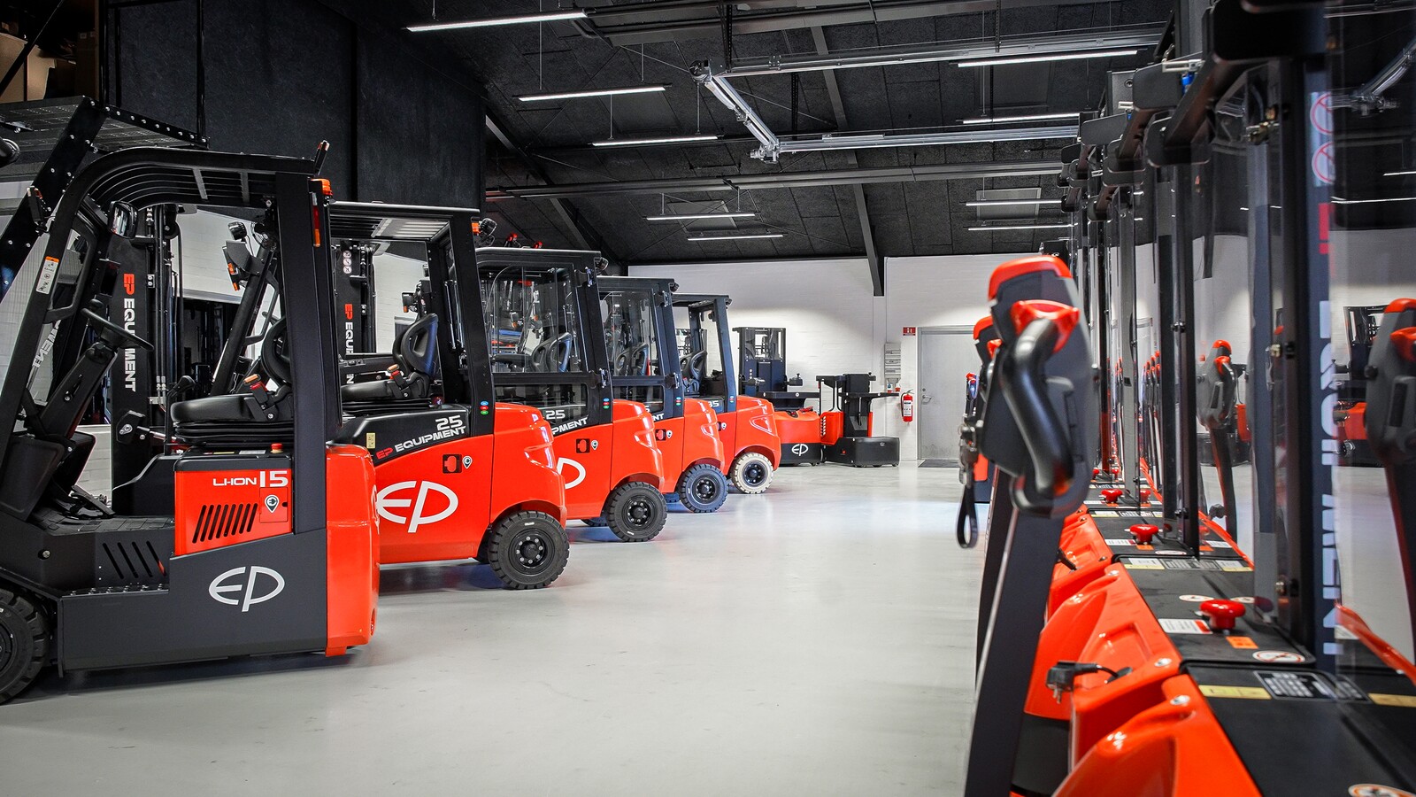 På vores 4200 m2 store lager finder du et af Danmarks største udvalg af klargjorte gaffeltrucks og andre maskiner.