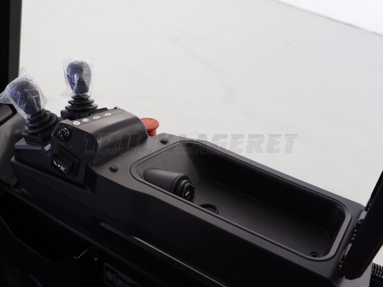 Retningsvælger i armlæn, 2 x joystick i kryds som Linde (kan også leveres med fingertip)