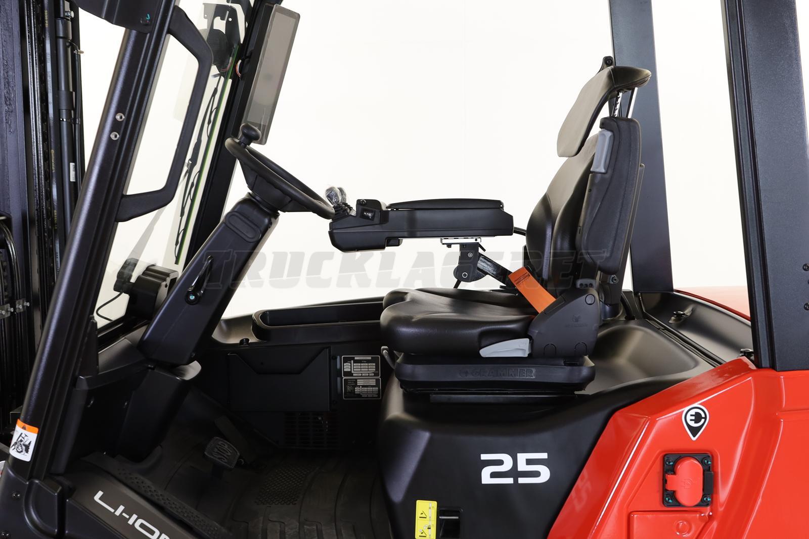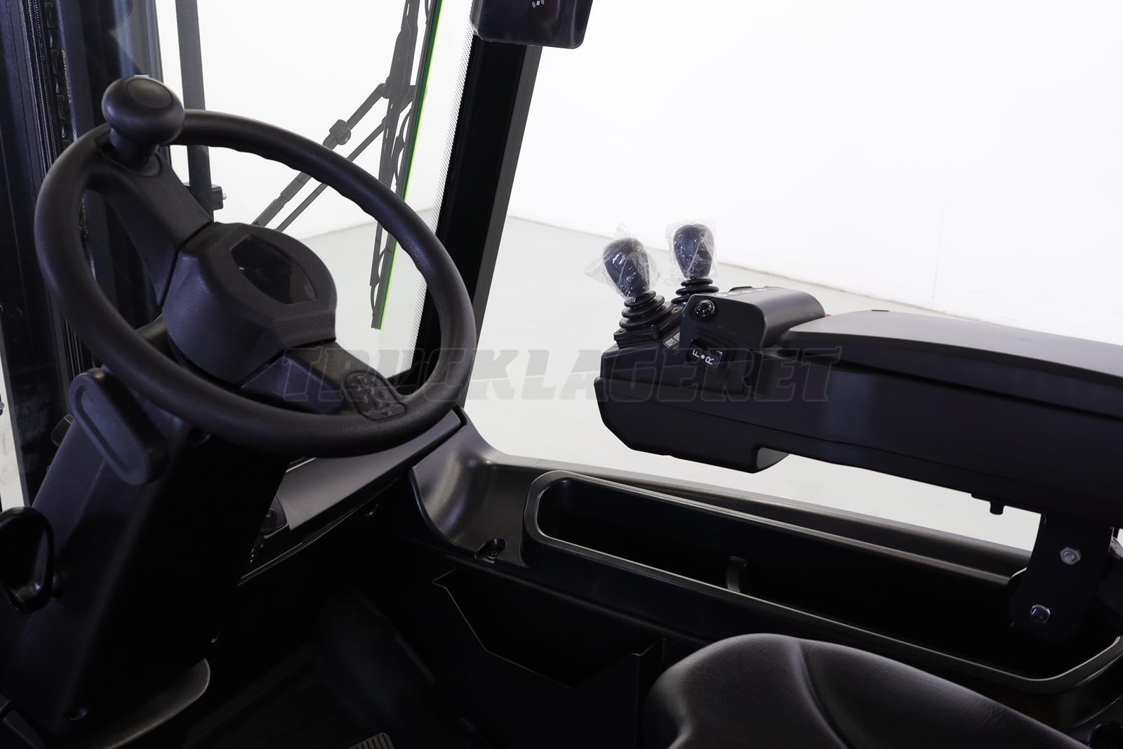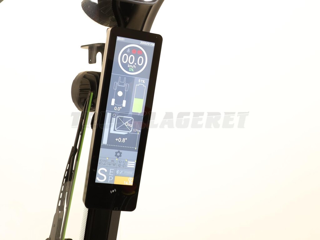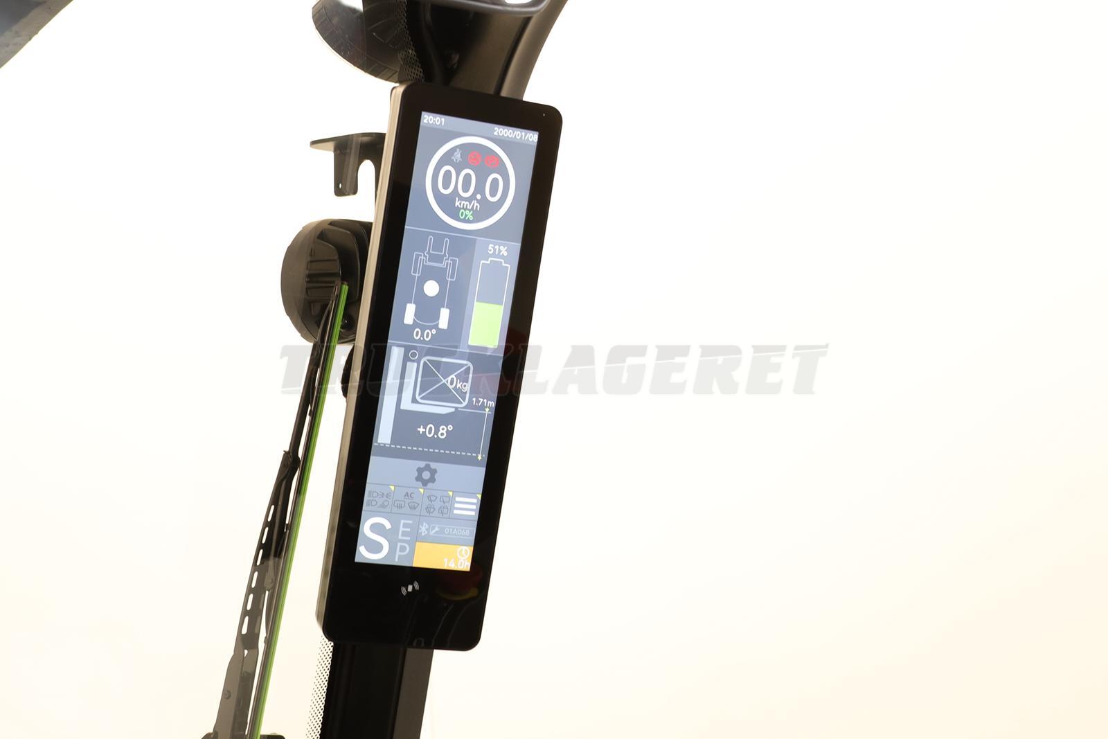 Grammer komfortsæde, justerbar ratstamme, spejl, elektrisk p-bremse (auto stop), stor fodrum/indstigning (524 mm), multifunktions touch display; vægt- og højdemåler samt mastens tiltvinkel***